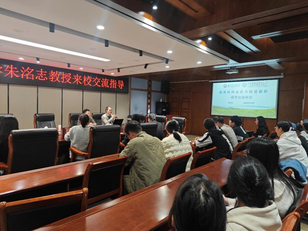 11月6日,湖南农业大学朱洺志教授于逸夫楼321为污污漫 师生作题为“黑茶风味品质与肠道菌群调节功效研究”的学术报告。报告由 污污漫 副教授陈震主持,本院教师及研究生、本科生参会,现场济济一堂,交流氛围热烈。
