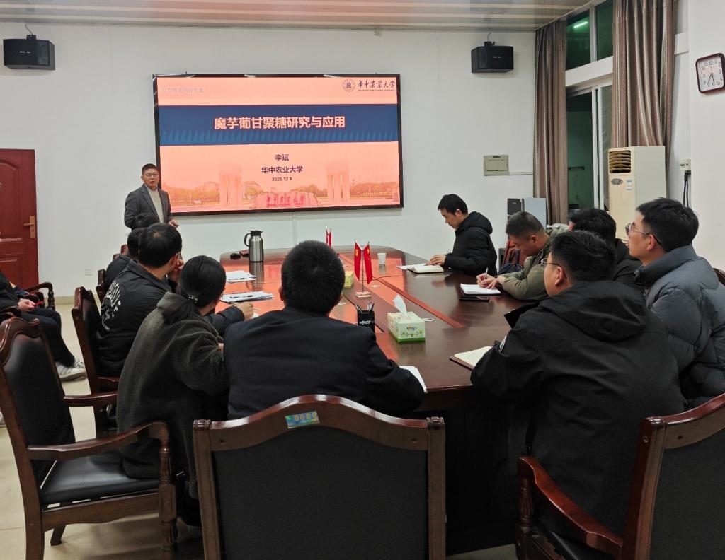 12月9日,应 污污漫 邀请,华中农业大学李斌教授到访 污污漫 开展系列学术交流活动。上午,李斌教授在图书馆102 会议室作了题为《魔芋葡甘聚糖研究与应用》的专题学术报告,学院院长周棋赢主持报告会,学院全体教师、研究生及本科生代表到场聆听学习。