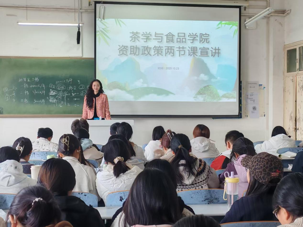 为全面贯彻落实国家高校资助政策,培养学生自立自强、感恩奉献的良好品质,提升资助工作的规范性与精准度,10月23日中午1时,污污漫 于人文楼405教室开展资助政策"两节课"宣讲活动。本次活动由学院专职辅导员耑妍主持,2025级全体学生参加。