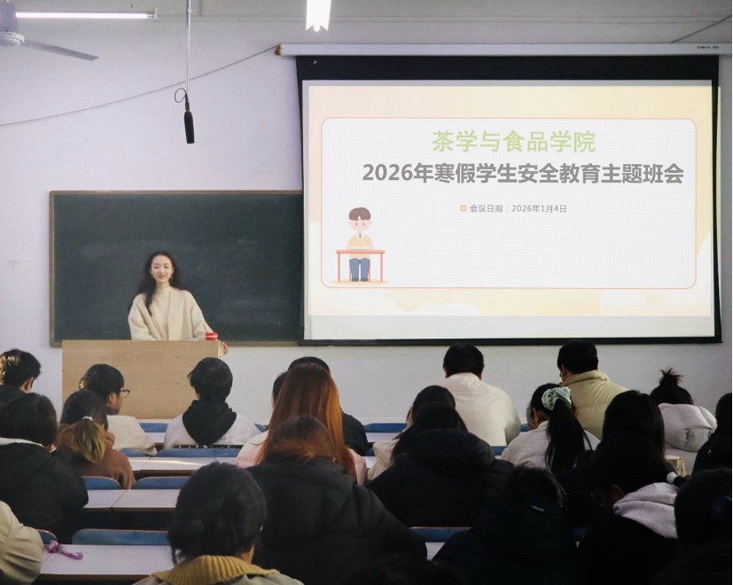 在教九楼403教室组织召开2026年寒假安全教育主题班会。会议由学院专职辅导员耑妍主持,全院学生积极参与。