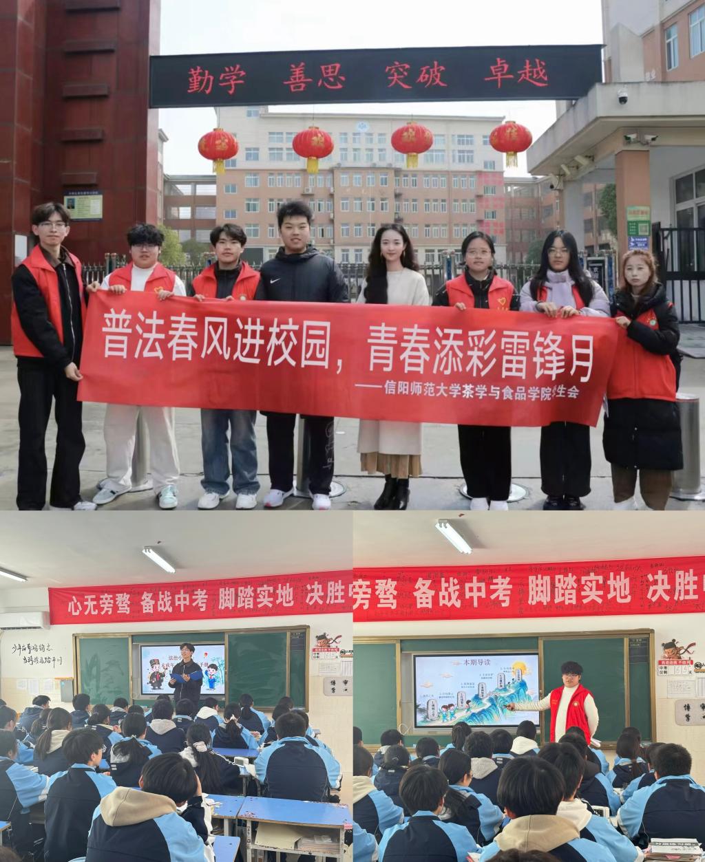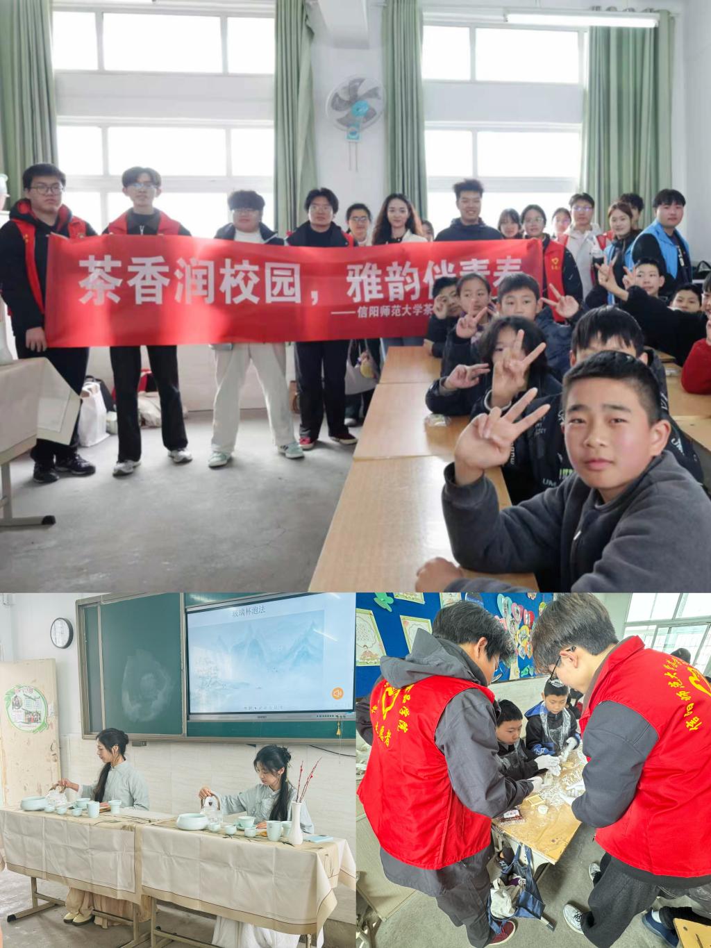 3月18日,学院志愿者走进信阳市平桥区外国语中学,通过《未成年人行为底线手册》PPT,结合真实案例讲解规则红线与自我保护方法,引导同学们学会用法律守护自身权益,在互动中强化法治意识。3月19日,志愿者与学生党员代表走进信阳市特殊教育学校,开展茶文化进校园活动。志愿者展示茶道技艺、讲述茶文化故事,让孩子们感受中华传统礼仪之美;DIY糕点环节中,孩子们发挥创意、亲手装饰点心,在陪伴中收获劳动喜悦,活动以手语合唱《送你一朵小红花》温情收尾,诠释“有爱无碍”的温暖。