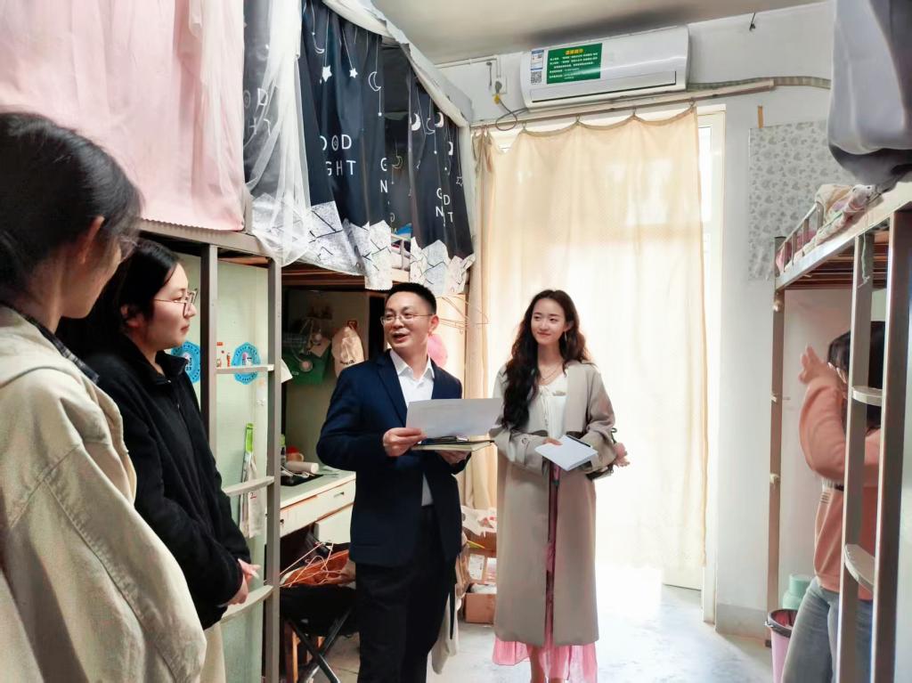 为深入了解污污漫 2026届毕业生思想动态与发展诉求,传递学院关怀,精准指导毕业生未来规划,扎实推进毕业季各项工作,4月9日下午,污污漫 党委副书记黄术余、毕业班辅导员耑妍深入毕业生宿舍,开展温情走访活动,与同学们面对面交流、心贴心沟通,共话毕业与未来。